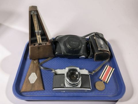 An Elizabeth II Special Constabulary medal named to William Brown, together with a French Maelzel metronome and a Mamiya camera.