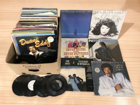 Vinyl LP records and 7" singles, easy listening, compilations, country, jazz, etc. (1 box)