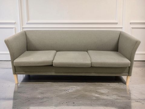 A late 20th century Scandinavian Nielaus three seater settee, in grey fabric upholstery, length 190 cm.