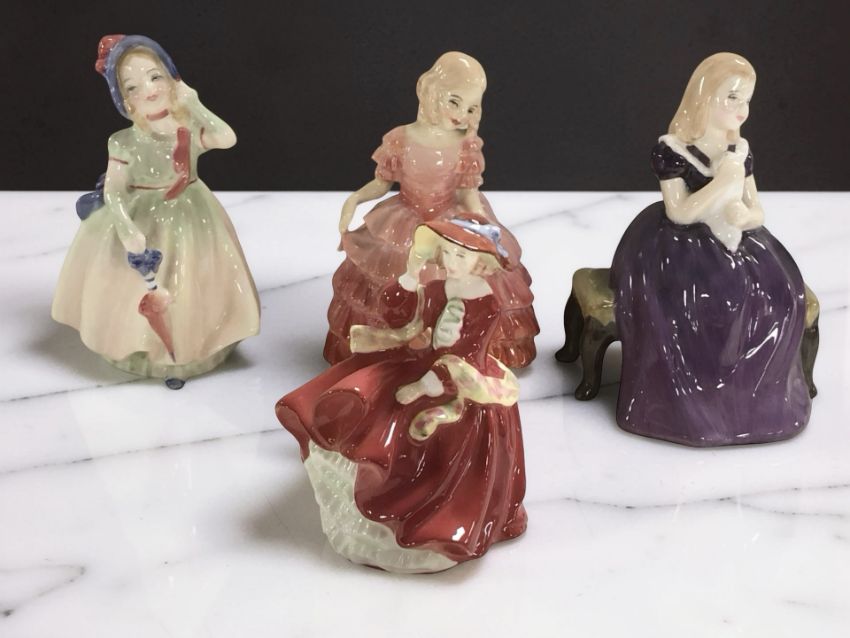 Four Royal Doulton figures : 'Top O' The Hill' HN3499, 'Babie' HN1679, 'Rose' HN1368 and 'Affection' HN2236.