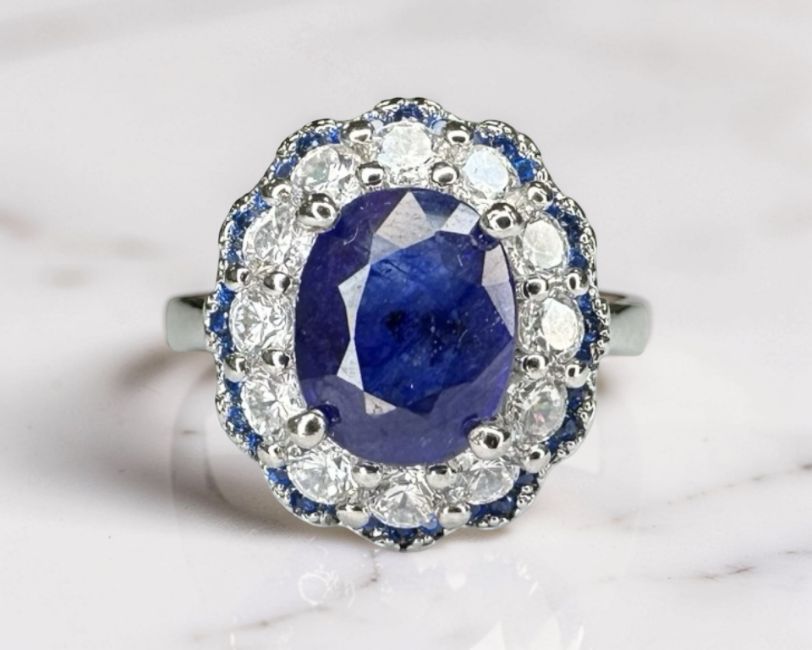 A 2.6ct natural sapphire cluster dress ring, size K, with AIG certificate