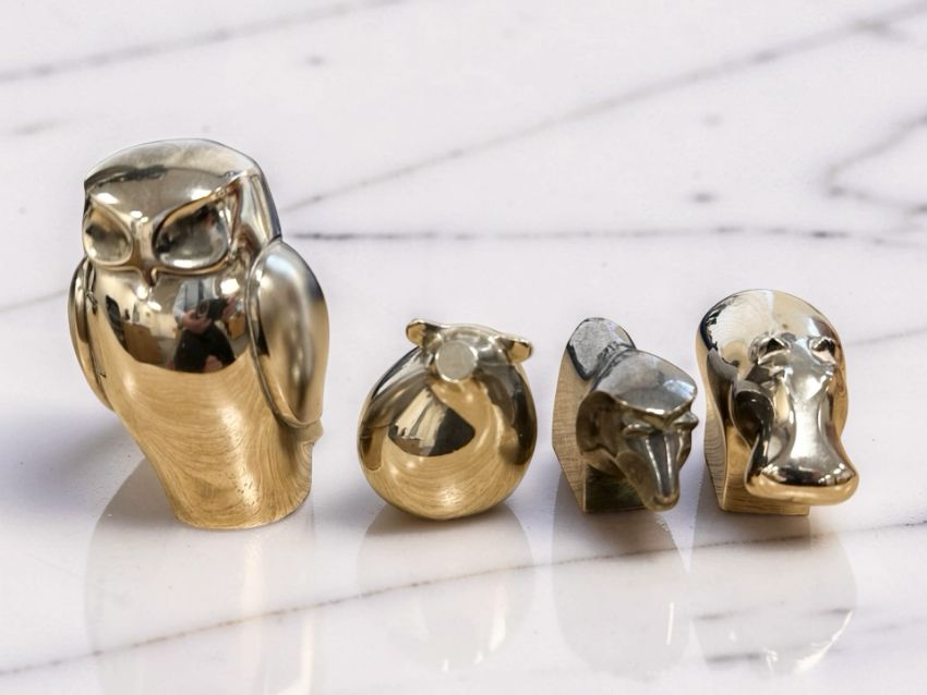 Four Dansk designs silver-plated paperweights modelled as an owl, hippo, pig, and lion, tallest 8cm.