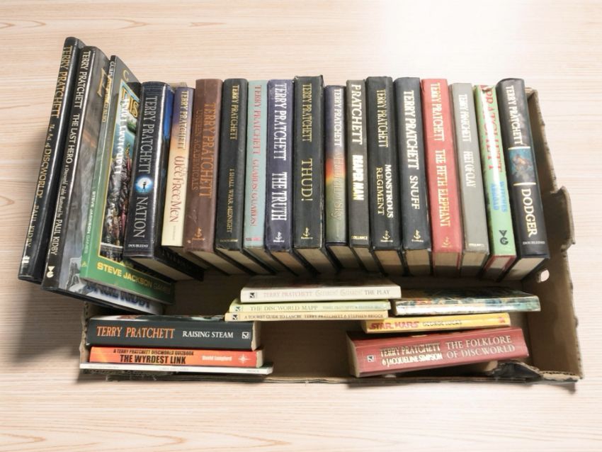 A collection of Terry Pratchett volumes.