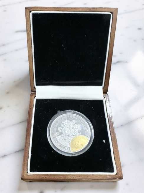 A 2014 United Kingdom Silver Crown : The Great War Ends Circulating Gold in Great Britain & Ireland, 28.8 g, boxed.