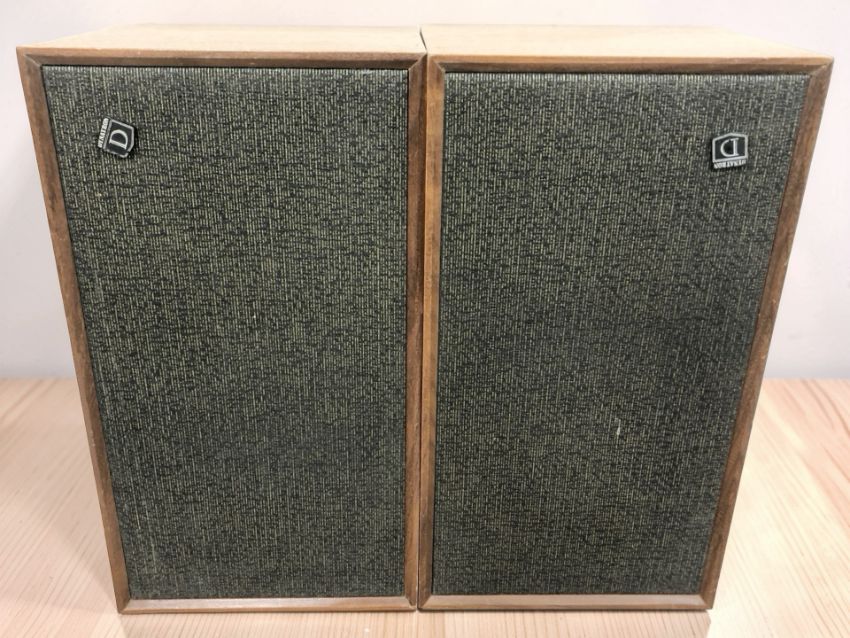 A pair of Dynatron teak cased speakers, height 47 cm.