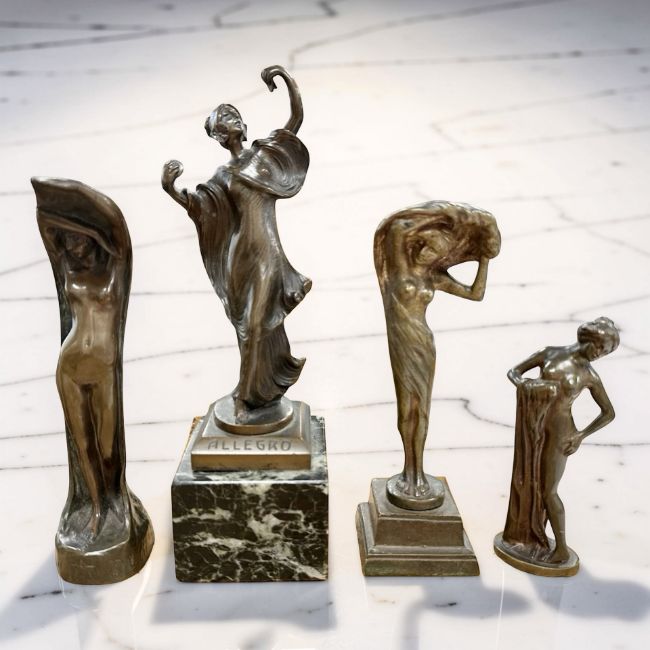 Four Art Nouveau bronze figures of ladies, tallest 17cm.