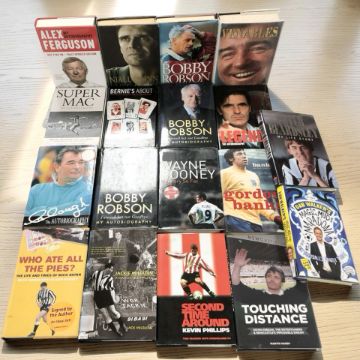 A group of autobiographies including Bobby Robson, Wayne Rooney, Alex Ferguson, etc. (1 box)