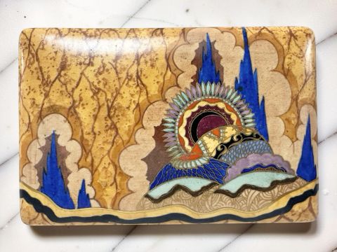 A scarce Carlton Ware Awakening pattern rectangular porcelain trinket box and cover, width 15 cm.