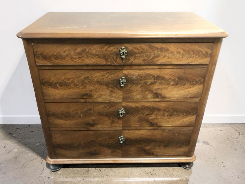 An early 20th century continental mahogany four drawer chest, 94 cm x 50 cm x 90 cm.