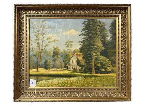 H Pedersen : Watermill by woodland, oil on canvas, 46 cm x 36 cm.