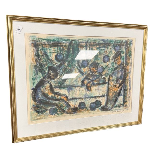 Anker Landberg : Fisherman by nets, limited edition colour print, numbered 62 / 290, signed in pencil, 65 cm x 48 cm.
