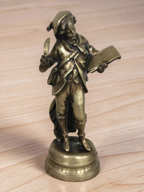 A cast brass figure of a boy with quill and parchment, height 39 cm.