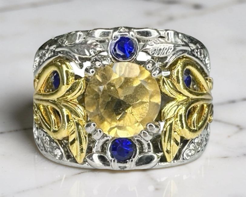 A silver gilt dress ring set with natural citrine, size O, with AIG certificate.