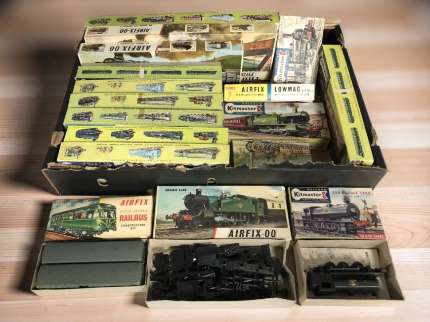 Airfix and Kitmaster railway scale modelling kits. (17, 1 box)