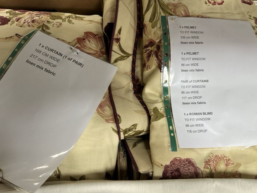 A group of curtains, helmets and Roman blinds (three boxes)
