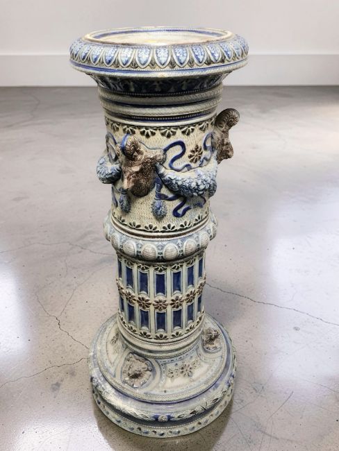 A German Westerwald salt glazed stone ware jardiniere pedestal, height 81 cm