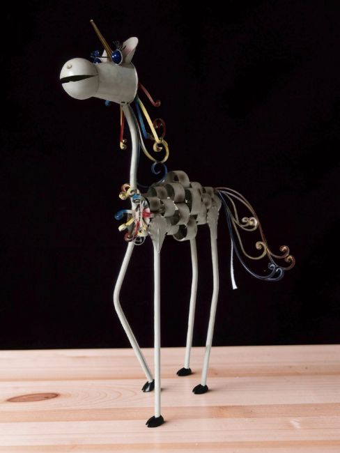 A contemporary wrought metal figure of a unicorn, height 109 cm