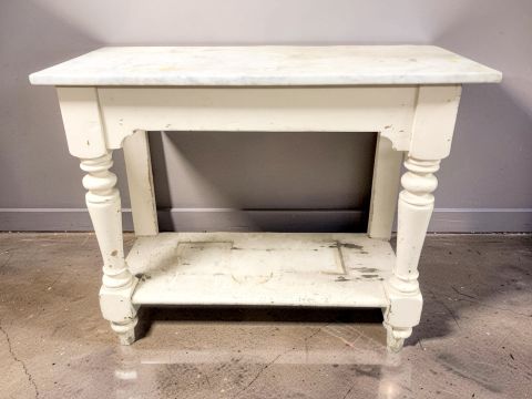 A late Victorian painted pine side table with marble top, 107 cm x 46 cm x 89 cm