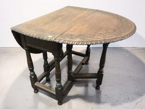 An Edwardian carved oak drop leaf gateleg table, width 91 cm.