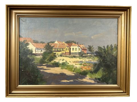Danish School : Buildings by a coast, oil on canvas, 62 cm x 43 cm.