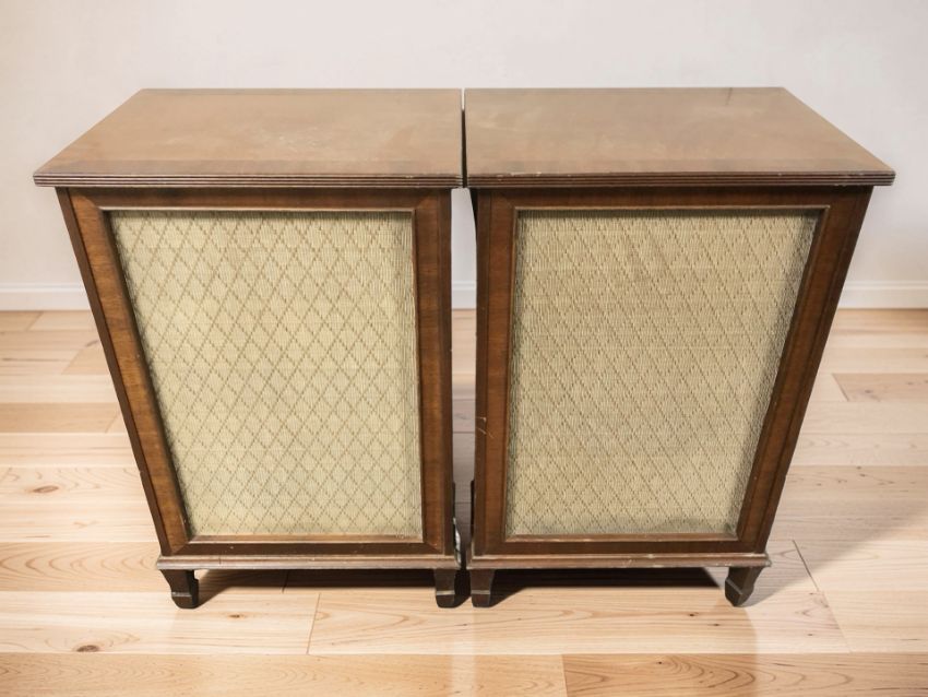A pair of Dynatron LS 2804 mahogany cased speakers, height 70 cm