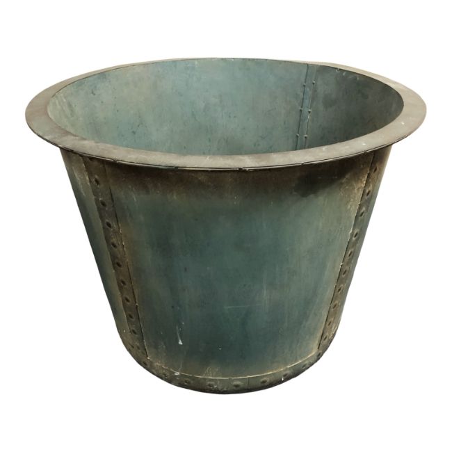 A large 19th century verdigris copper vessel, diameter 72 cm, height 56 cm.