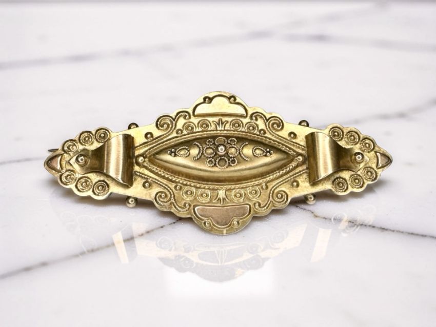 A Victorian 9ct gold brooch, width 4.5cm