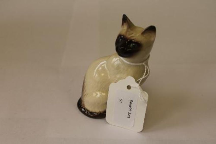 A Beswick Figure : Siamese Cat - Seated, Head Turned Back, model 1887, seal point, gloss, height 10.1 cm.