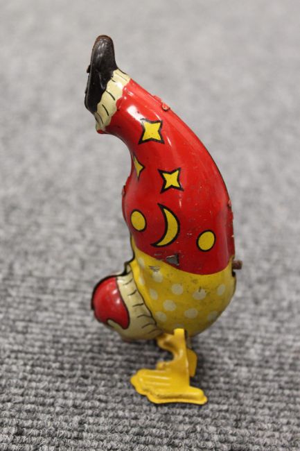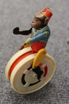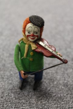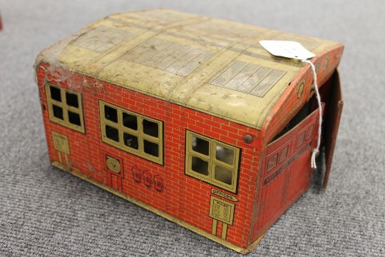 A Mettoy tin plated Joy Town Fire Brigade station, together with a collection of nine mechanical and other toys, part boxed. (10) CONDITION REPORT: Most items require cleaning but in fair conditions to include - Mettoy Fire Brigade stattion, Clifford Series Rolls Royce, circs monkey on tricycle, two cinderella and prince charming waltzing figures by Wells-Brimtoy, Novelty inverted clown figure by A Wells, West German monkey on uni cycle, A Schuco Solisto violinist, Peter Pan Series clucking hen and a Tri-ang Wakcuwa push button horse. Some with boxes which are in poor condition.