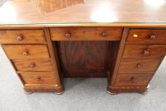 A Victorian mahogany knee hole desk, width 122 cm.