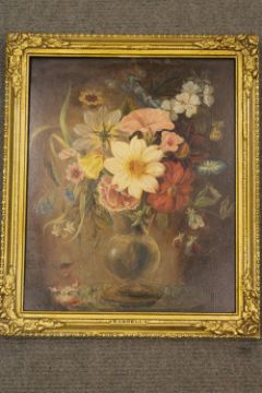 Manner of Edward Ladell : A still life with mixed flowers in a vase, oil on panel, 35 cm x 28 cm, framed.