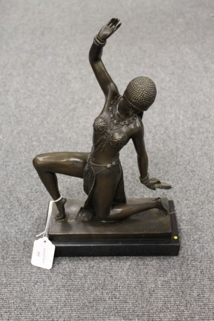 After D.H.Chiparus - bronze study of a dancing lady with tambourine, on marble plinth, height 40 cm.