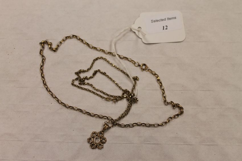 A 9ct gold necklace with pendant, together with another 9ct chain necklace, 11.5g. CONDITION REPORT: Good condition.