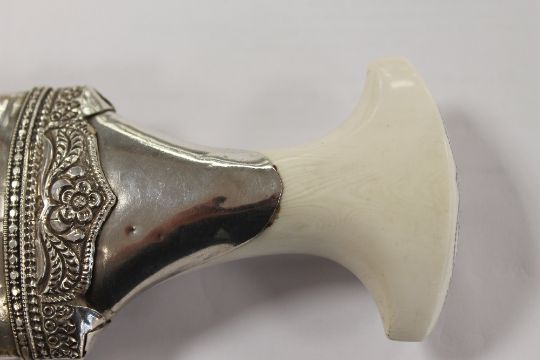 A fine khanjar dagger mounted in white metal. CONDITION REPORT: A twentieth century example in good condition.