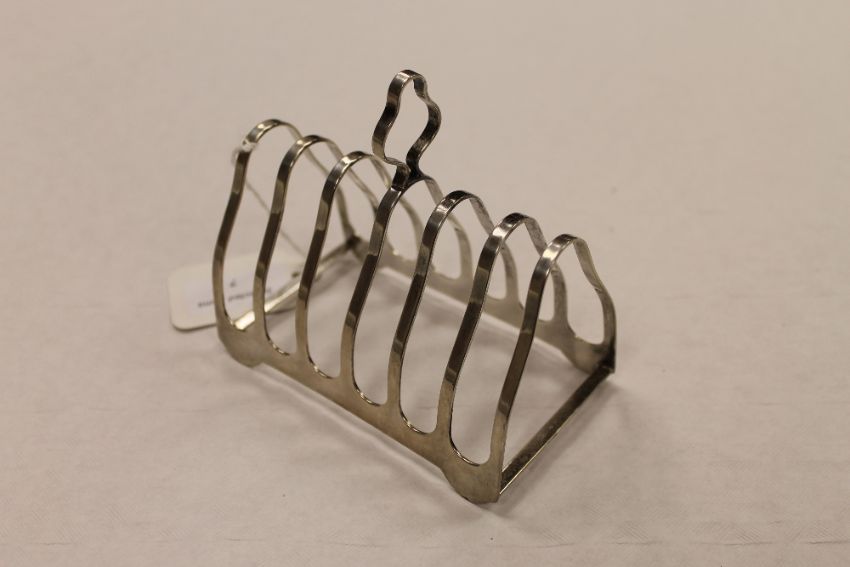 A silver toast rack, Birmingham 1939. CONDITION REPORT: Good condition.