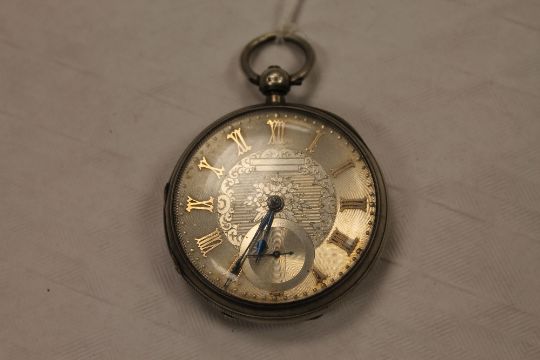 A silver pocket watch. CONDITION REPORT: Good condition, the marks a little rubbed, requires cleaning.