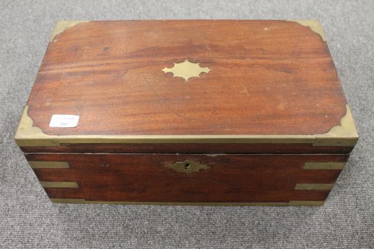 A nineteenth century brass mounted mahogany writing box, width 45.5 cm. CONDITION REPORT: Good condition external, requires attention within, time aged filled crack to the lid.