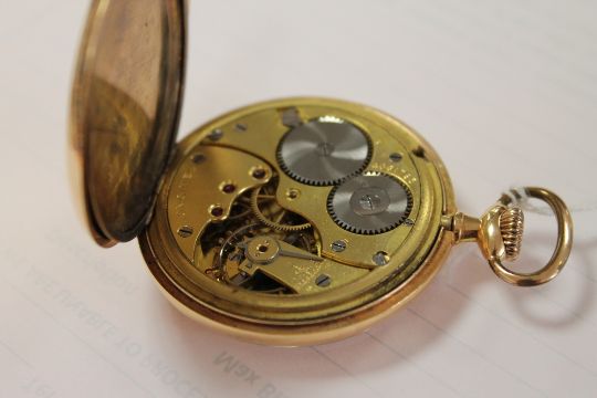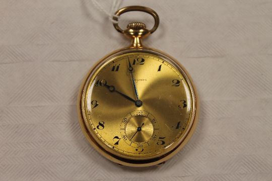 A 14ct gold Longines pocket watch. CONDITION REPORT: Gross weight 67g. Internal numbered 4061795, 14ct gold front and back. Good condition, mechanically untested.