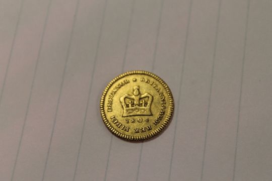 A Queen Anne Guinea 1713, together with 1/3 Guinea 1804 and one other gold coin. (3)
