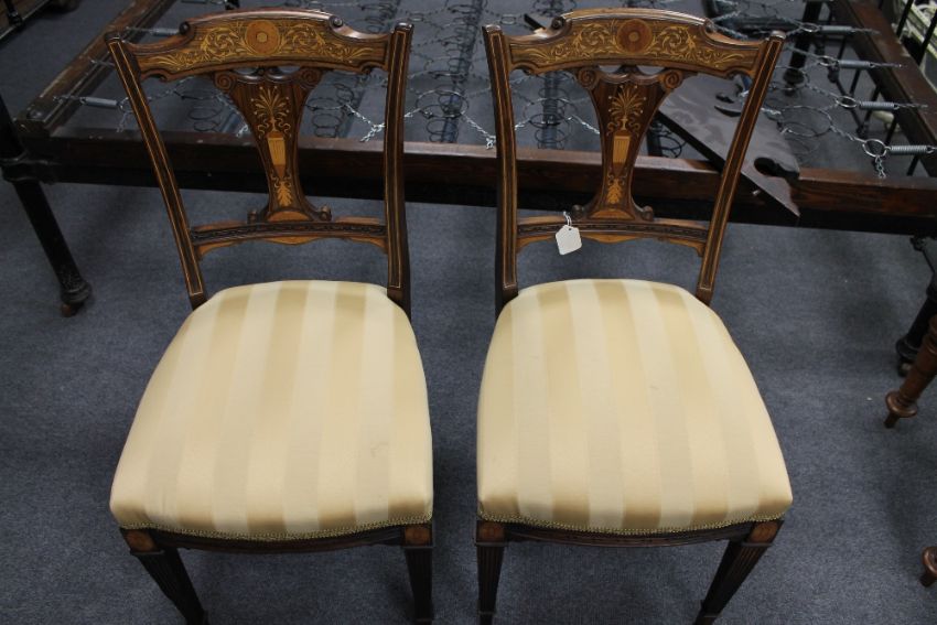 A pair of Victorian inlaid rosewood salon chairs. (2)