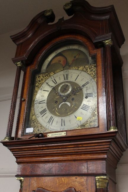 An early nineteenth century inlaid oak long cased clock by Underhill and Son of Wolverhampton, with Whittington and Westminster chimes.