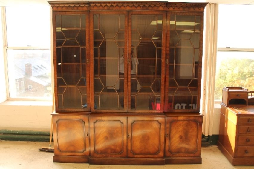 A Georgian style mahogany breakfront four door bookcase, width 204cm.