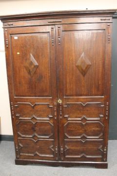 A nineteenth century oak Gentleman's wardrobe, fitted, width 132cm.