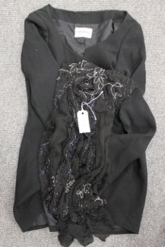 An Emanuel Lingard black jacket, together with a black two-tone sequin over-dress. (2)