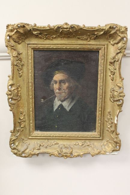 Late nineteenth century school : A portrait of a man smoking a pipe, oil on canvas, 15cm x 20cm, framed.