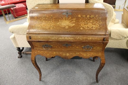 An early twentieth century inlaid marquetry piano front bureau, width 89cm.