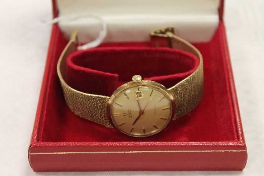 A 9ct gold Omega Gentleman's wrist watch, with original guarantee document, 64.2g, boxed. CONDITION REPORT: Good condition.
