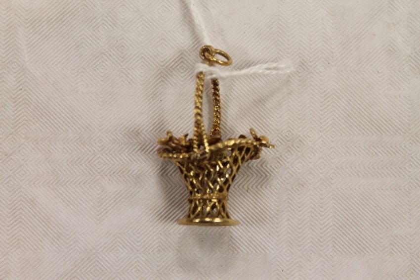 A 9ct gold floral basket charm, 7g. CONDITION REPORT: Good condition.
