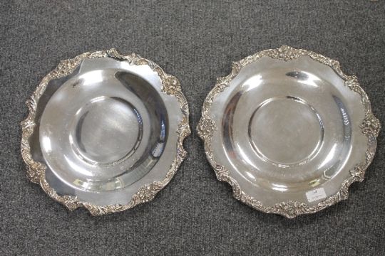 A pair of silver plated serving plates, with scroll decoration, by Reed and Barton, diameter 37cm. (2) CONDITION REPORT: Excellent condition