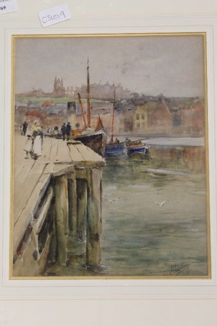 Robert Jobling : Whitby, watercolour, signed, 30 cm x 23 cm, framed.